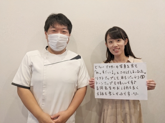 半年通って効果を感じられなかったのに、初回で目が大きくなり、リフトアップしたことでお化粧をしたときに輪郭が引き締まるようになりました。