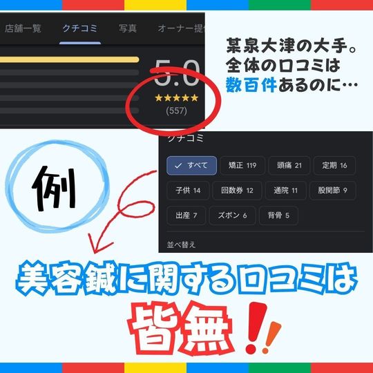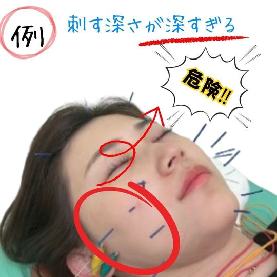 あなたの周りの危険な美容鍼。鳳や津久野、深井などグループ整骨院ではこのような危険な美容鍼が横行しています。