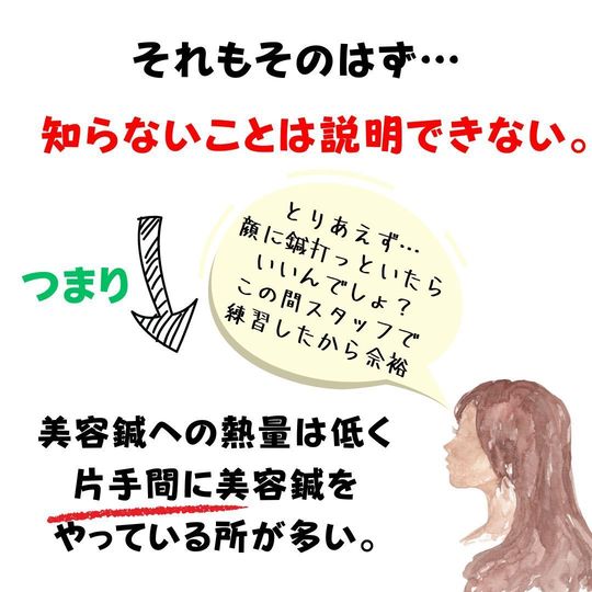 一つでも抜けがあると、そのサロンの施術者は美容について知識がありません。