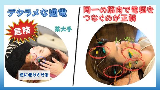 でもこれ、実は“緩めたい筋肉”と“引き締めたい筋肉”に同じ刺激を与えるという、逆効果の施術なんです。