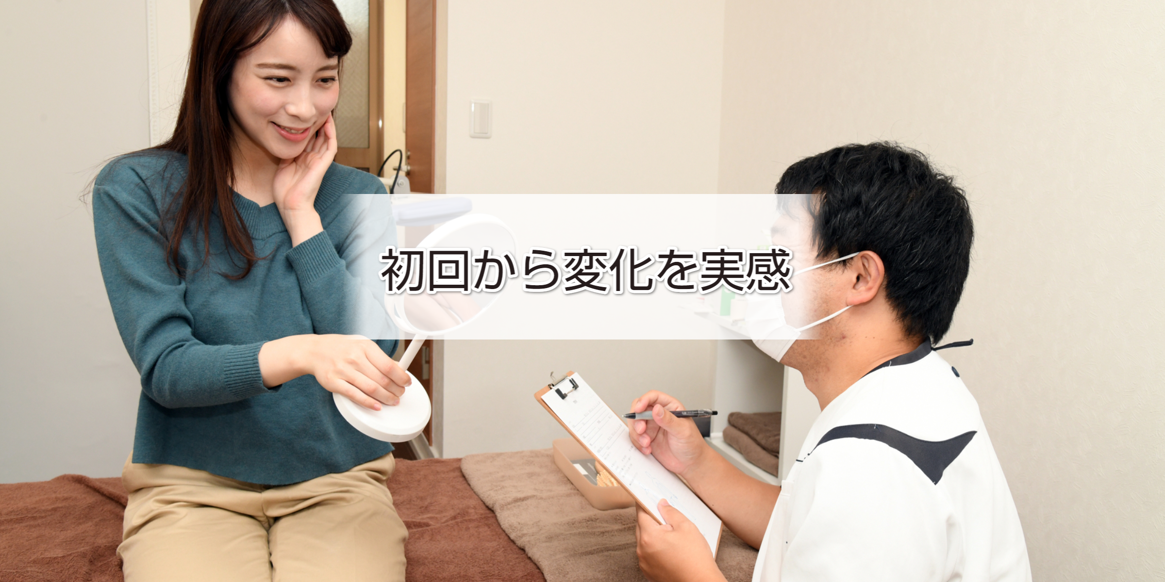 初回から顎回りのもたつきが気にならなくなり、その変化に驚かされました。今では月一のメンテナンスで今の状態が維持できています‼