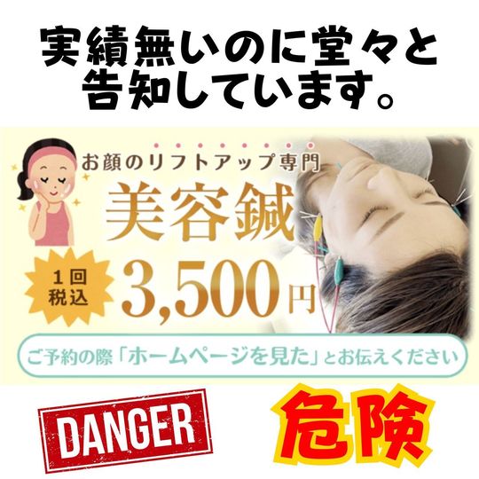 彼らはスタッフ同士で少し練習しただけで美容鍼をしています。ほかの業種で考えてみるといかに危ういかがよくわかる。