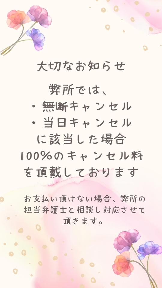 ※ 当日キャンセルは、チケット1回分消費とさせていただきます(他の方に迷惑がかかる為)。必ず前日までにご連絡ください。