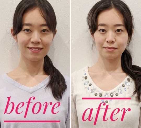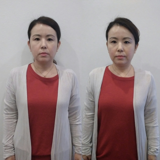初回で驚くほど結果が出ました。しっかり継続され、月一のメンテナンスもしっかり通われていますので、今では一回りお顔が小さくなり、ハリも良い状態を維持できています。最初の決意通り頑張って通われた結果だと思います。