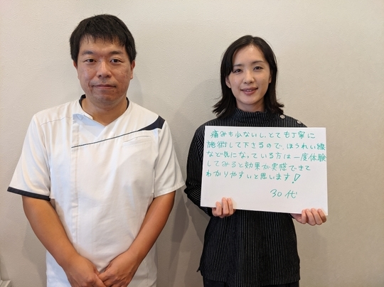 痛みも少ないし、とても丁寧に施術して下さるので、気になっている方は一度体験してみると効果が実感できて分かりやすいと思います。