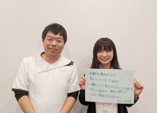 初回時に施術結果に大変満足していただき、お写真、並びに動画の提供にご協力いただきましてありがとうございます。現在、目標に向かって順調に進んでいますので一緒に悩みの解決を達成しましょう‼